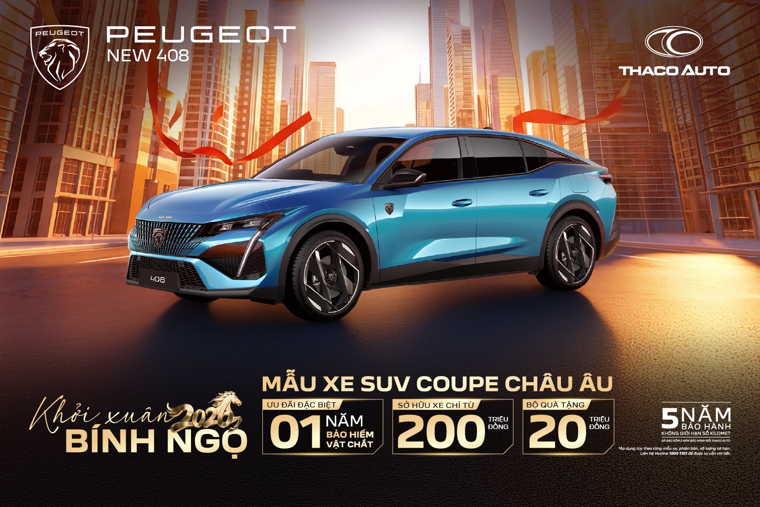 Dành cho những khách hàng đề cao dấu ấn cá nhân, New Peugeot 408 mang đến cảm giác lái đậm chất thể thao với động cơ 1.6L Turbo PureTech, hộp số tự động 8 cấp và khả năng tăng tốc 0–100 km/h trong 8,8 giây, sẵn sàng khơi dậy cảm hứng trên mọi cung đường. Mức giá từ 999 triệu đồng, ưu đãi 1 năm bảo hiểm vật chất, chi phí trả trước từ 200 triệu đồng giúp việc sở hữu trở nên dễ dàng hơn bao giờ hết. Đặc biệt, New Peugeot 408 Legend Edition – phiên bản kỷ niệm 215 năm thương hiệu, giới hạn 215 chiếc – nổi bật với màu Xám Selenium độc quyền, nội thất ghế da nâu sang trọng, logo kỷ niệm trên tựa đầu ghế cùng bộ quà tặng sưu tầm riêng biệt. Một lựa chọn dành cho những ai tìm kiếm giá trị khác biệt và tính sưu tầm hiếm có.